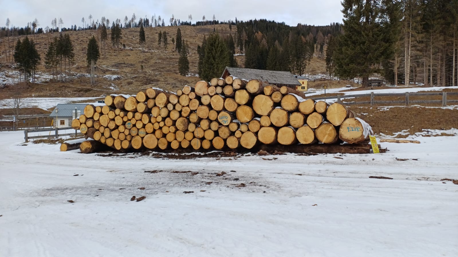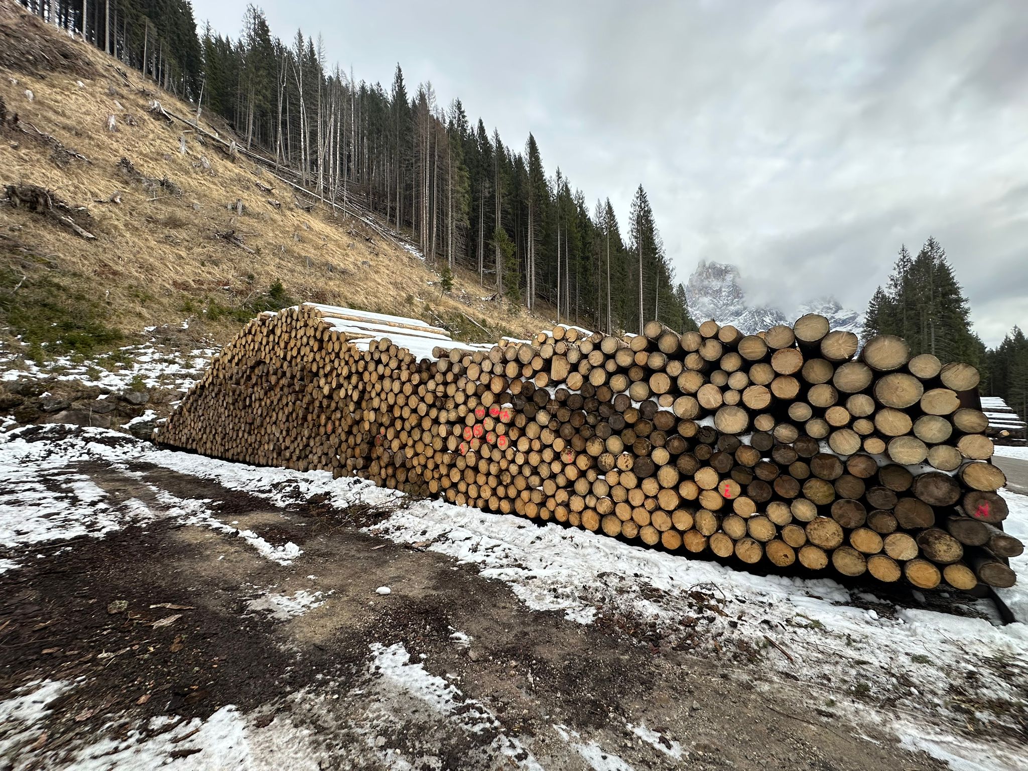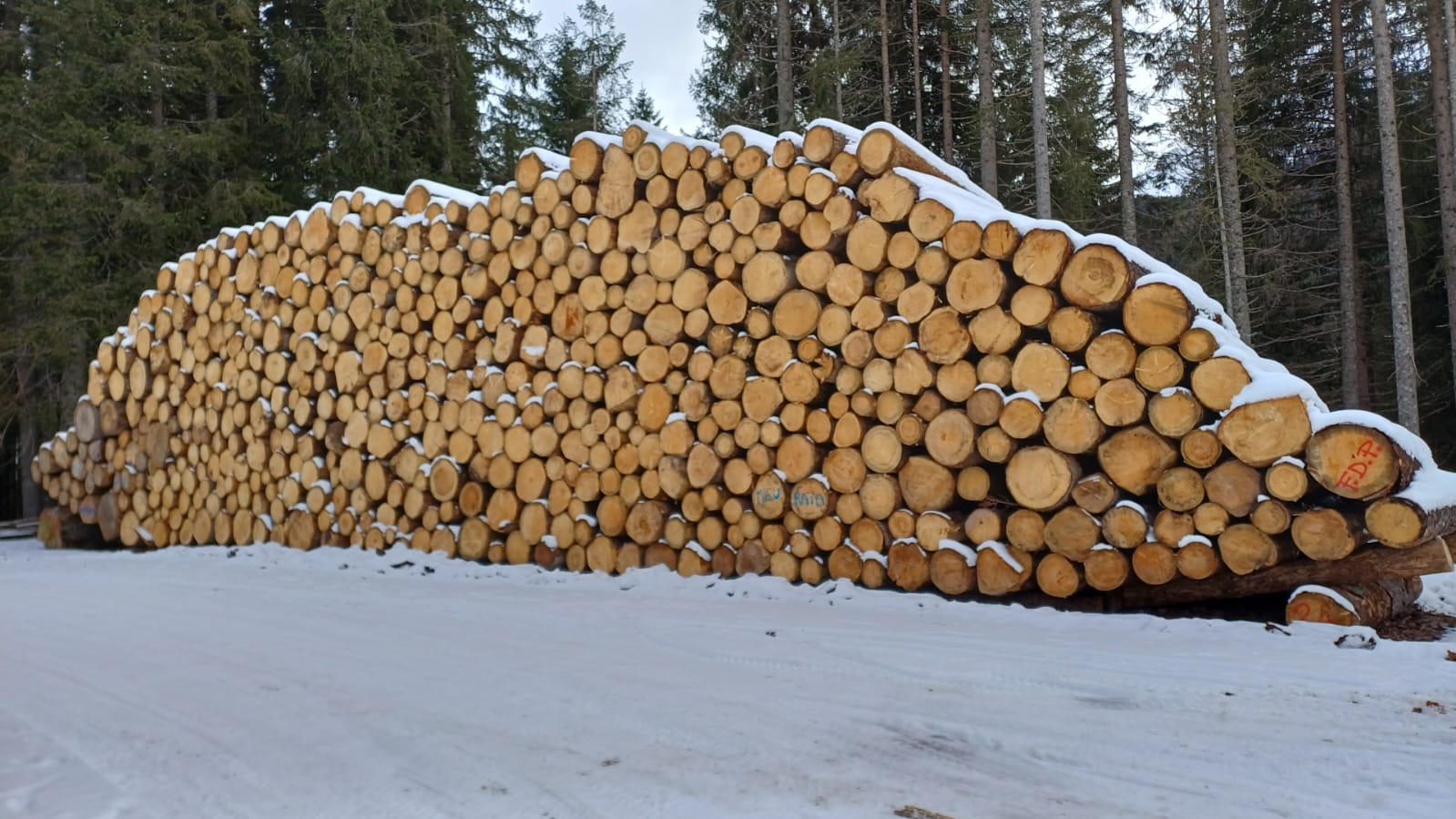 F.D. di Paneveggio. Loc. accatastamento: p.le Bocche. PINO CEMBRO di diverse lunghezze: 3, 4 e 5 m. Misurazione a cavalletto.